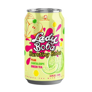 Lady Boba Cantaloupe & Pear Bubble Tea Drink 320ml, a refreshing milk tea blend with sweet cantaloupe, juicy pear flavor, and chewy boba pearls. Serve chilled for the best taste.